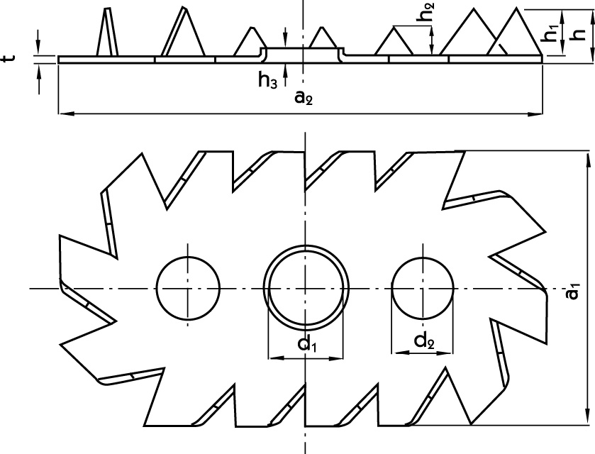 | Center hole | Side holes | Teeth | Total | t | ||||||