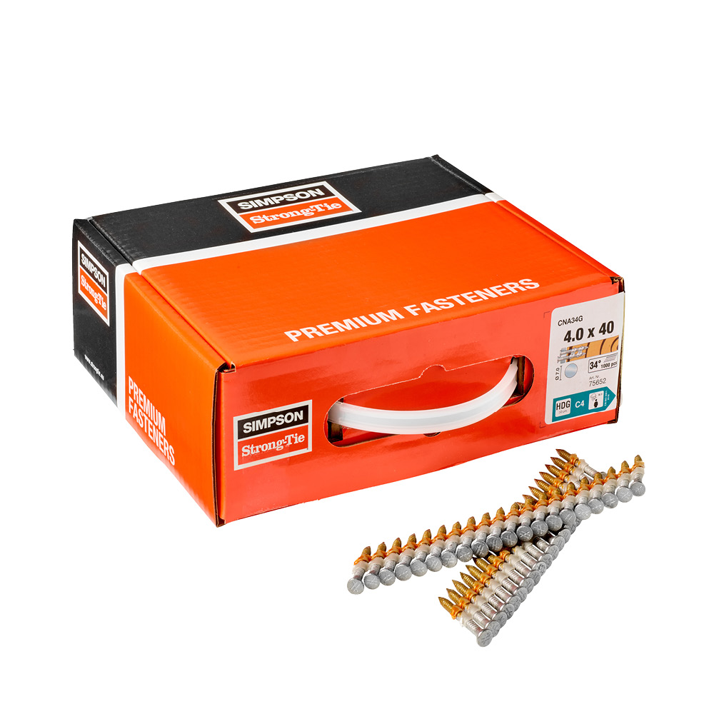 The CNA nails are recommended for structural assemblies and to use with Simpson Strong-Tie connectors. The plastic collated nails reduce the time for installation.
