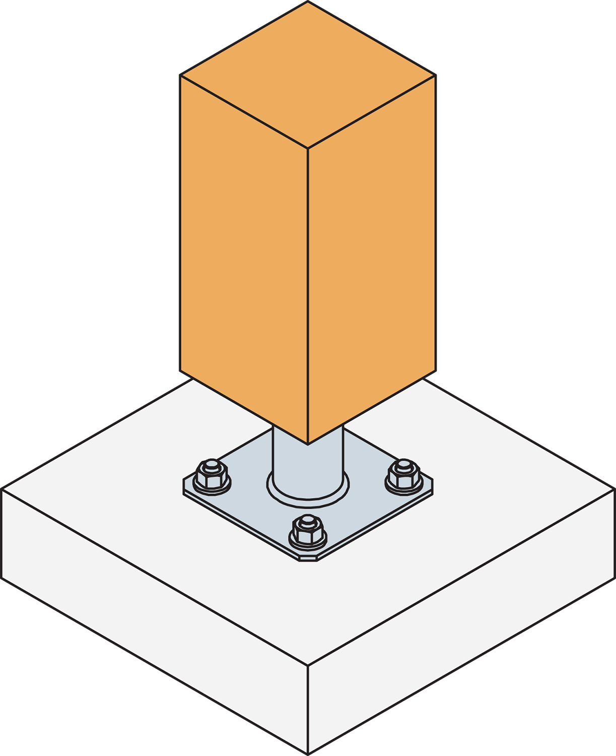 - Reposition the post base and insert the anchors (tap gently with a hammer if needed) and use a torque wrench to tighten to the recommended installation torque of 50Nm