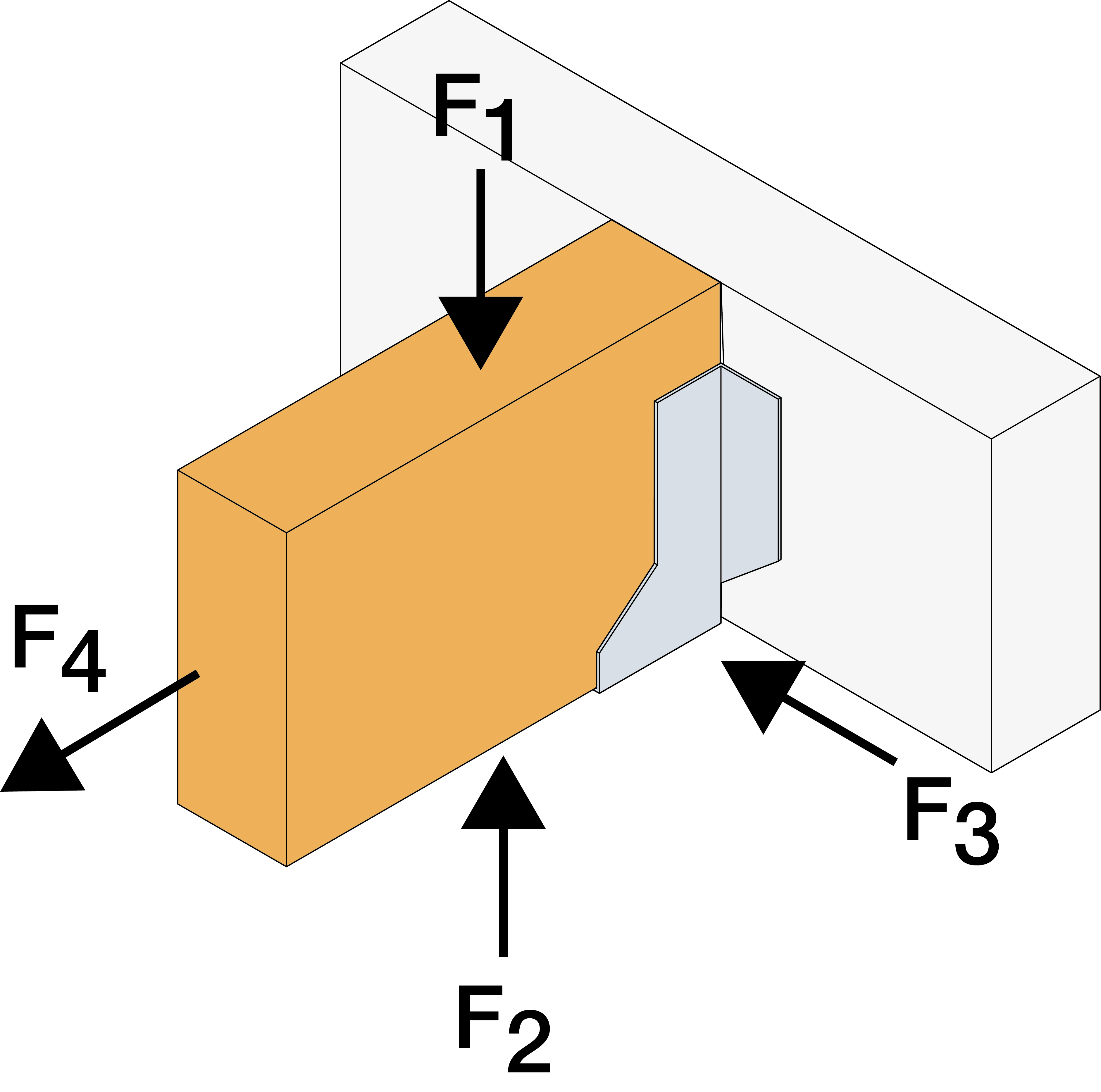 - Sit the carried member into the hanger and install 4 No 3.75x30mm square twist nails through the round holes into the side of the supported member.