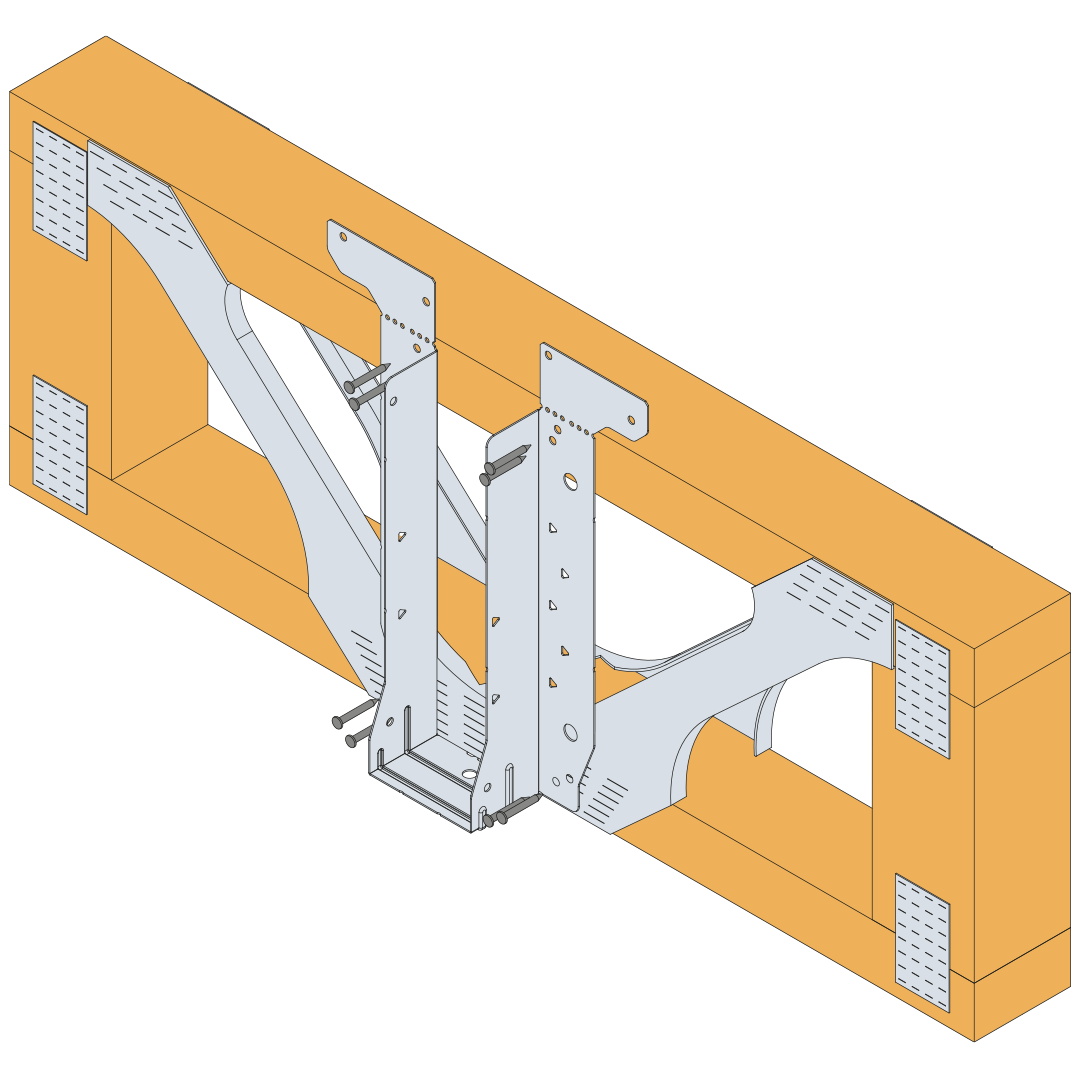 - Position the EWH hanger onto the face of the SIP so that the top of the carried member will finish level with the top of the SIP.