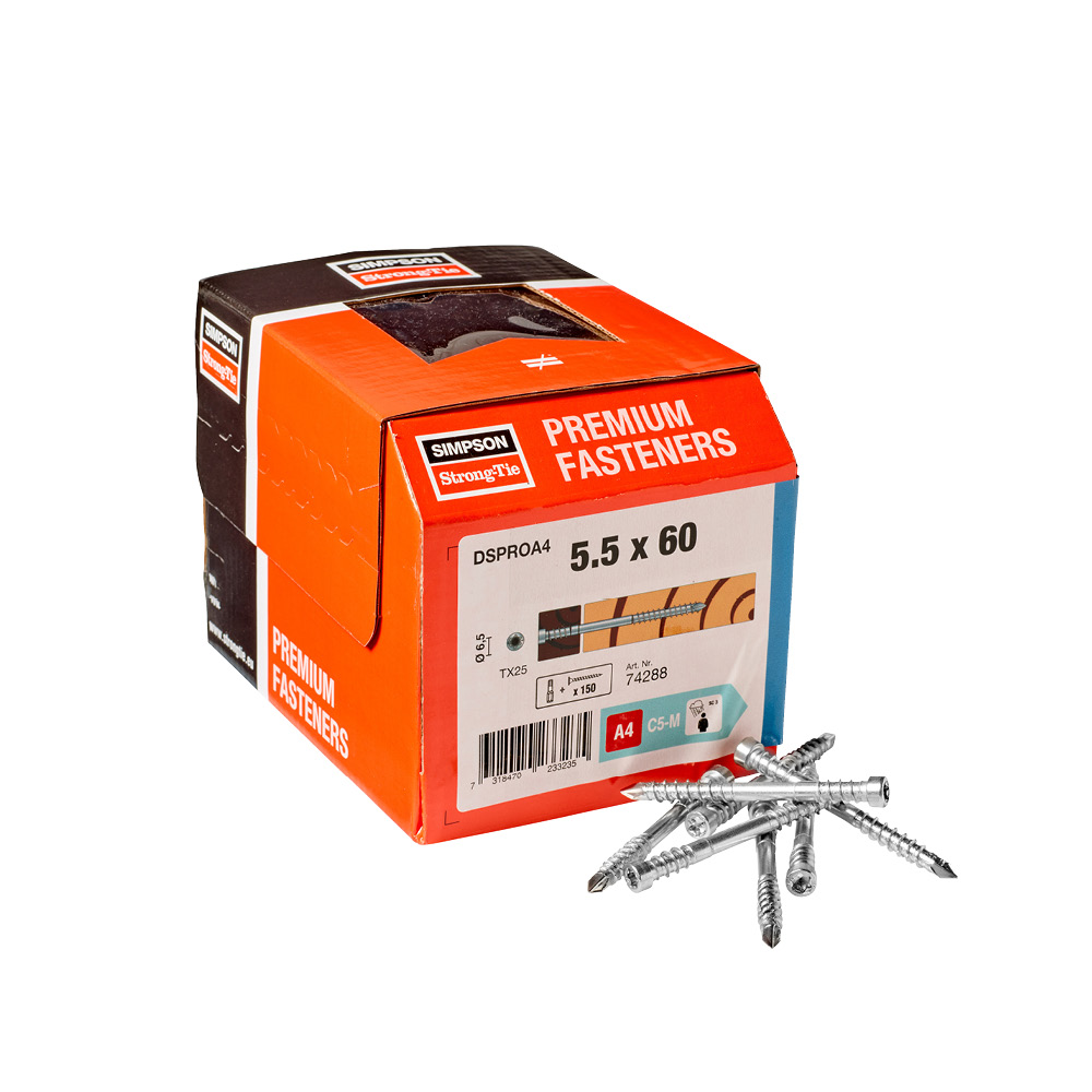 The DSPROA4 hardwood decking screw is a powerful fastening solution for hardwood decking such as IPE, Cumaru, Bankirai and others. Made from A4 stainless steel allows for the screw to be used in marine environments. The screw is designed to resist movement of the deck with a trim head for a neat, professional finish. The additional second thread helps pull the deck boards to the joist providing a more secure clamping effect.