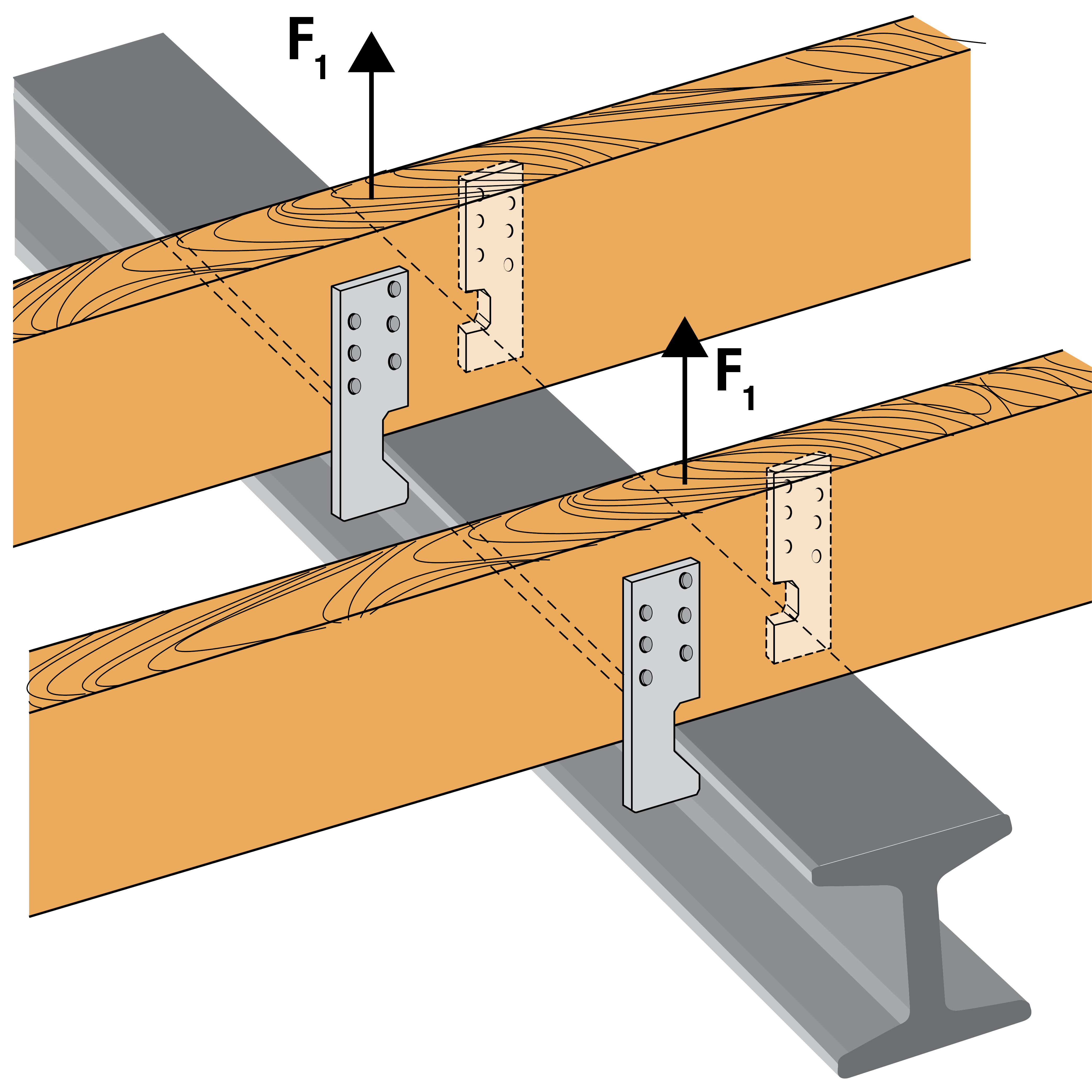 • The brackets can also be used for hanging on the wooden beams in steel girders.