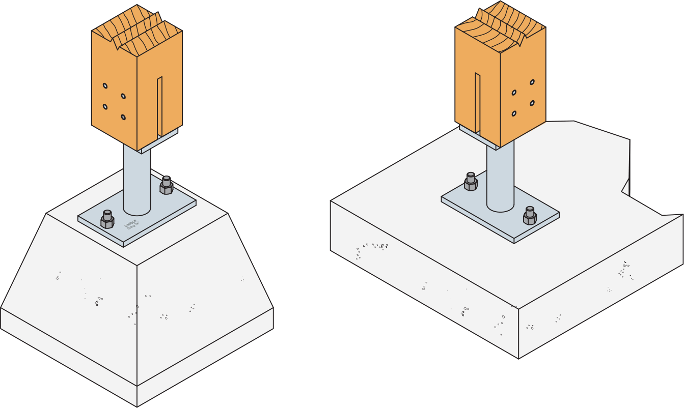 The post bases PISB are able to support characteristic downloads up to 12 tonnes. It can also take uplift thanks to the vertical plate. It must be fixed on concrete plot.
