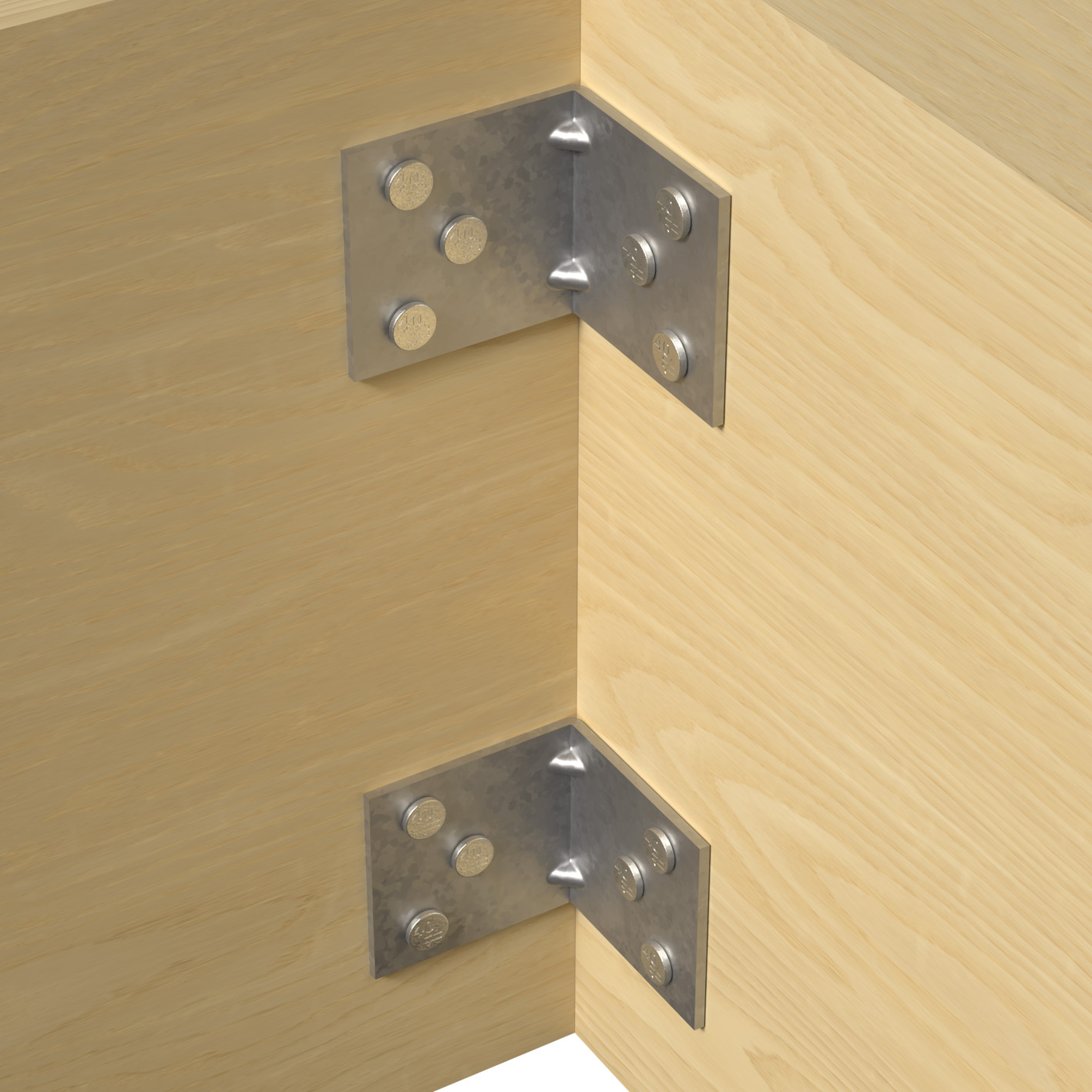 Light reinforced angle brackets are used to assemble small structural joinery for internal and external applications.
