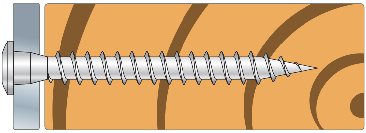 CSA-S connector screw is made from A4 marine grade stainless steel. It was developed for installing Simpson Strong-Tie stainless steel connectors to timber, in order to obtain the published load bearing capacities. The conical shape under the head ensures a full contact with the connector which increases the transfer of force. A fixed connection with larger cross-bearing capacity than for standard screws is obtained. The 6 lobe recess helps to fix the screw during insertion.