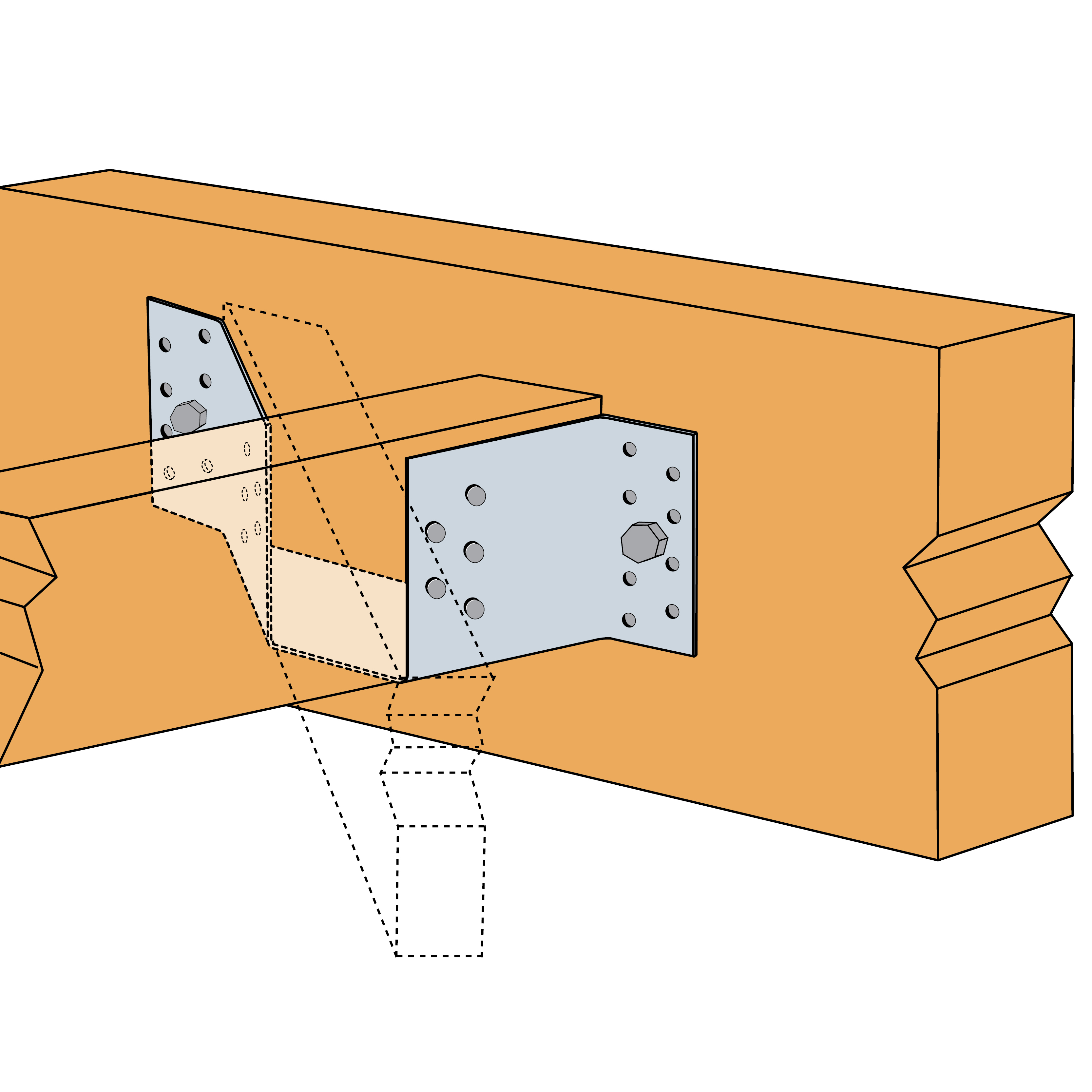 The ET is used for supporting skewed timber joists from timber members. This range is tested and standardised with a 45° skew angle left or right.