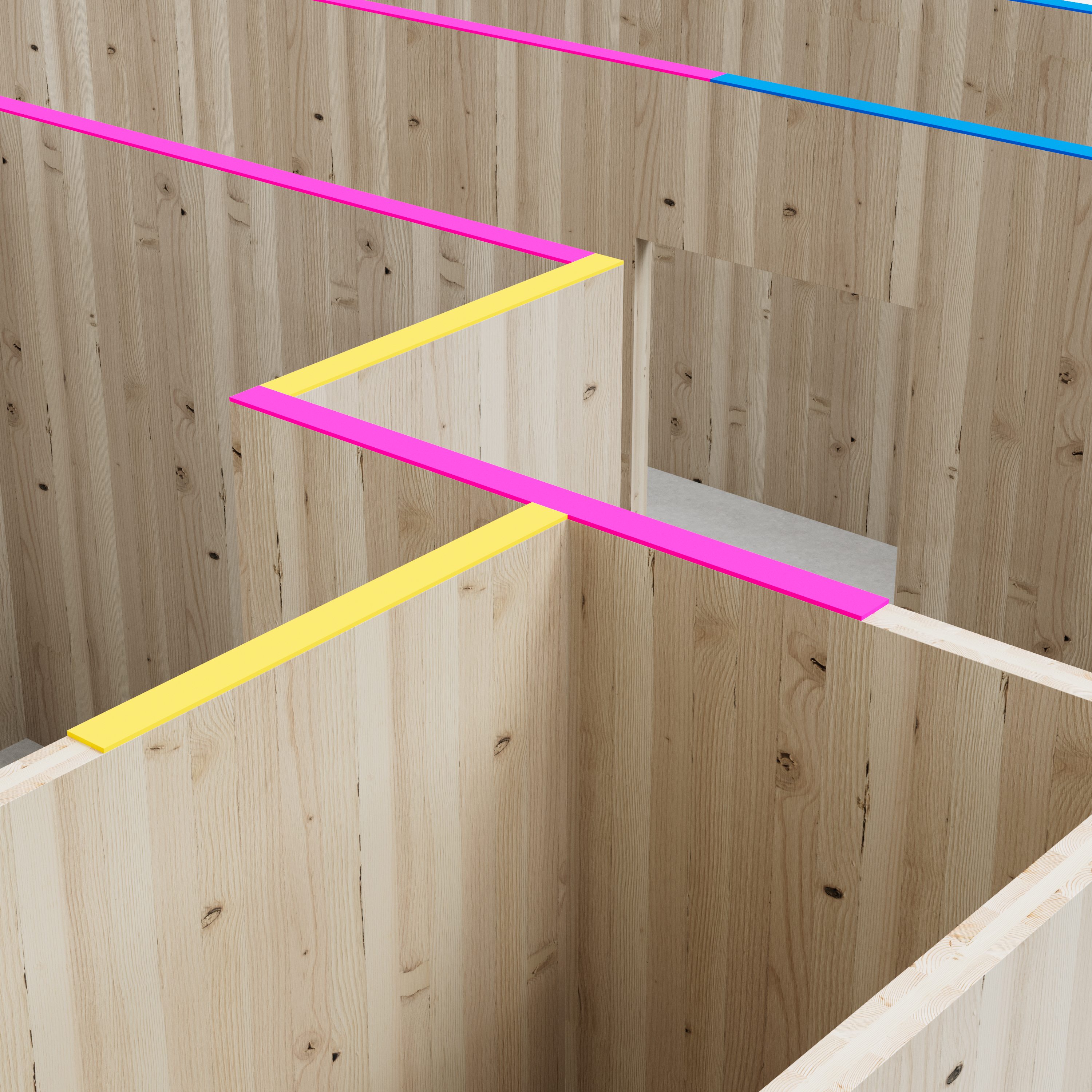 SIT acoustic isolating strips are recommended for CLT buildings that are required to deliver superior acoustic performance. They guarantee acoustic insulation between timber walls and floors. The choice of the strip's density depends on the weight of the wall.