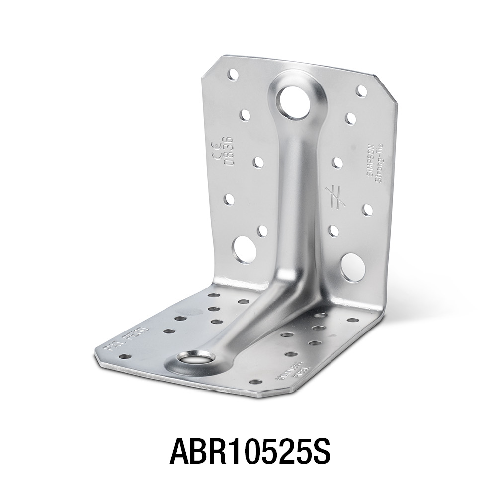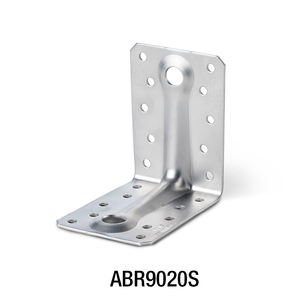 The ABR angle brackets with rib can be used in high loaded timber structures. These brackets are made of stainless steel and are recommended in aggressive atmospheres