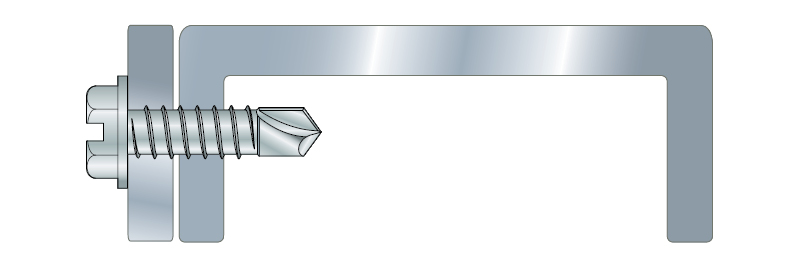 Self-drilling screw used to fix sheet metal to sheet metal, for example when joining ventilation to ductwork. Suitable for material up to 2x2.0 mm.