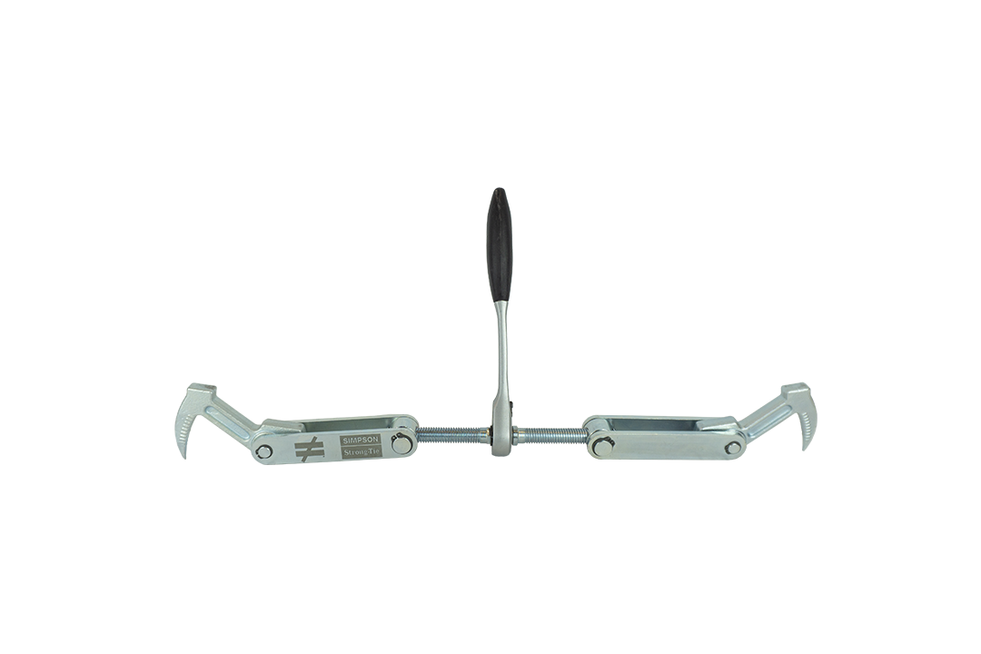 The WEC is a tensioning device for joining construction elements and beams. Together with the optional WECSA accessory, the tool is an ideal aid for tensioning wind braces. The double trapezoidal threaded spindle in conjunction with the high-quality ratchet ensures twice as fast and yet effortless tensioning compared to a standard single-run threaded spindle. The hand-forged, robust hooks guarantee secure installation and a perfect hold in the wood. The WECSA panicle strip holder is screwed onto the spindle with a right-hand thread instead of a hook. An eccentric clamping device reliably holds panicle strips up to 80 mm wide, enabling hands-free attachment of the panicle strips to the wooden structure.