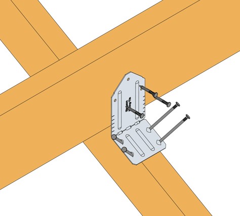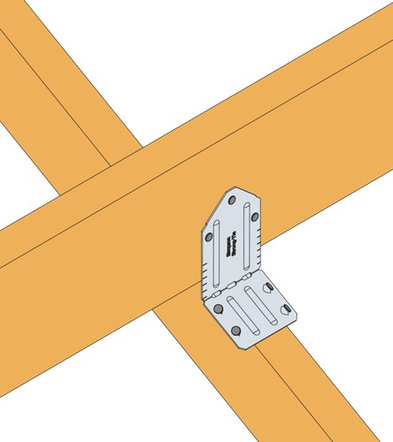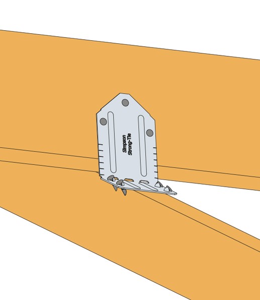 Specifically designed to provide an effective connection allowing valley trusses to be connected to common trusses. The VTCR eliminates the need to add a support wedge under the valley truss or to bevel the bottom chord to match the roof pitch. Site-adjustable, this single piece solution can be used on roof pitch angles from 10° to 40°.